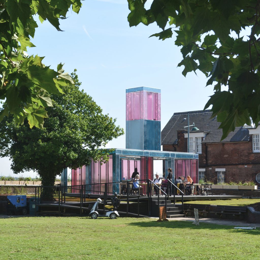 Erith Lighthouse stood at two locations alongside the Thames at Erith in Summer 2017. It hosted a community events programme, a daily café and a season of evening dining events, and aimed to celebrate Erith’s connection to the river and identity in the context of significant growth.